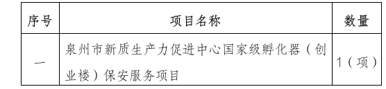附件:泉州市新质生产力促进中心国家级孵化器 (创业楼)保安服务项目报价单(参考格式)