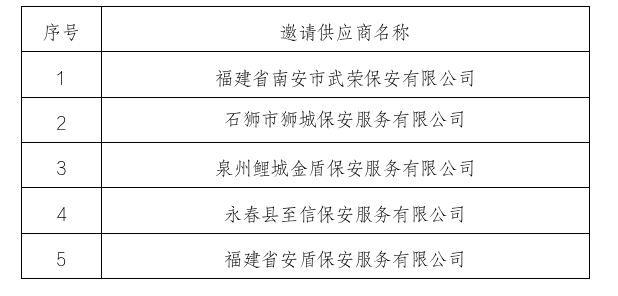 邀请供应商名单如下: