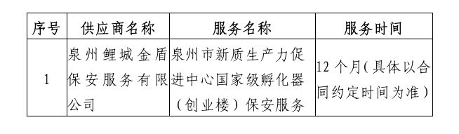 泉州市新质生产力促进中心国家级孵化器 (创业楼)保安服务项目的成交公告